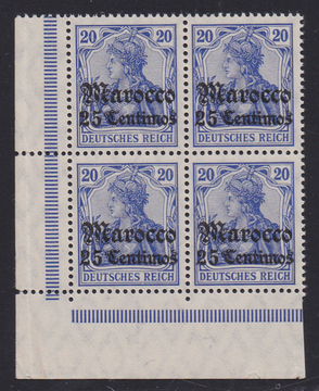 25 C. a. 20 Pfg. lilaultramarin im postfrischen Viererblock aus der linken unteren Bogenecke, Mi. 240,- ++