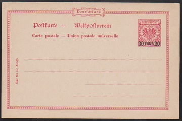 Ganzsachenkarte 20 Para a. 10 Pfg. tadellos ungebraucht, Fotoexp. Jäschke-L. Mi. 240,-