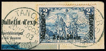 2 1/2 Pia. a. 50 Pfg. bräunlichrot tadellos gestempelt, Attest Jäschke-L. Mi. 550,-