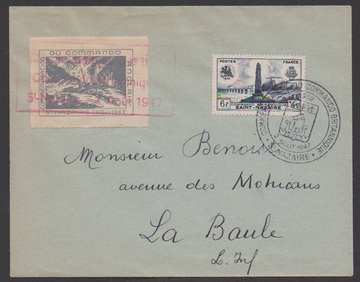 St. Nazaire, 1947, Gedenkvignette anläßlich des 5. Jahrestages der britischen Operation "Chariot", nebst Mi.-Nr. 785, auf sauberem Brief, Mayer Nr. 8, Attest Pieles