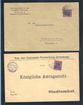 75 T. a. 50 Mk., zwei bessere Einzelfrankaturen auf Briefen aus Berlin bzw. Grossberg, bei letzterem Marke kurios erst am Empfangsort entwertet. Sign. Weinbuch bzw. Fleiner. Mi. 400,-