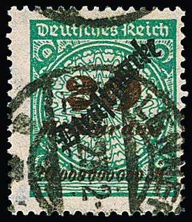 20 Milld. Mk. mit Plattenfehler "Sprung in der Rosette" tadellos gestempelt, Attest Fleiner. Mi. 800,-