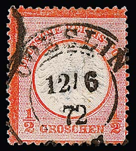 1/2 Gr. ziegelrot (min. punkthell) mit seltener Entwertung durch rötlichbraunen K2 "Coeslin"