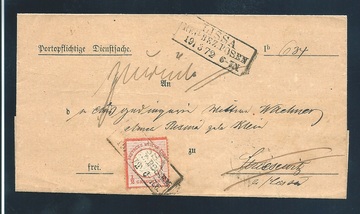 1/2 Gr. ziegelrot einzeln auf Retour-Vordruckbrief mit Ra3 "Lissa Reg. Bez. Posen" in den eigenen Landbezirk mit rs. Retourvermerk des Landbriefträgers