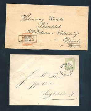 1/3 Gr. hellgrün einzeln auf etwas bügiger Orts-Drucksachenkarte aus Straßburg 1872, sowie 1/2 Gr. orange einzeln auf Brief mit Ra2 "Wirsitz" in den eigenen Landbezirk