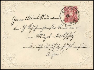 10 Pfge. rosa auf besonders opulent geprägtem Zierbrief aus Leipzig