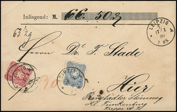 10 u. 20 Pfge. auf seltenem Orts-Werbrief aus Leipzig 1880