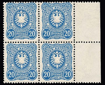 20 Pfg. kobaltblau im tadellos postfrischen rechten Rand-Viererblock, sign. Petry. Mi. 680,- +