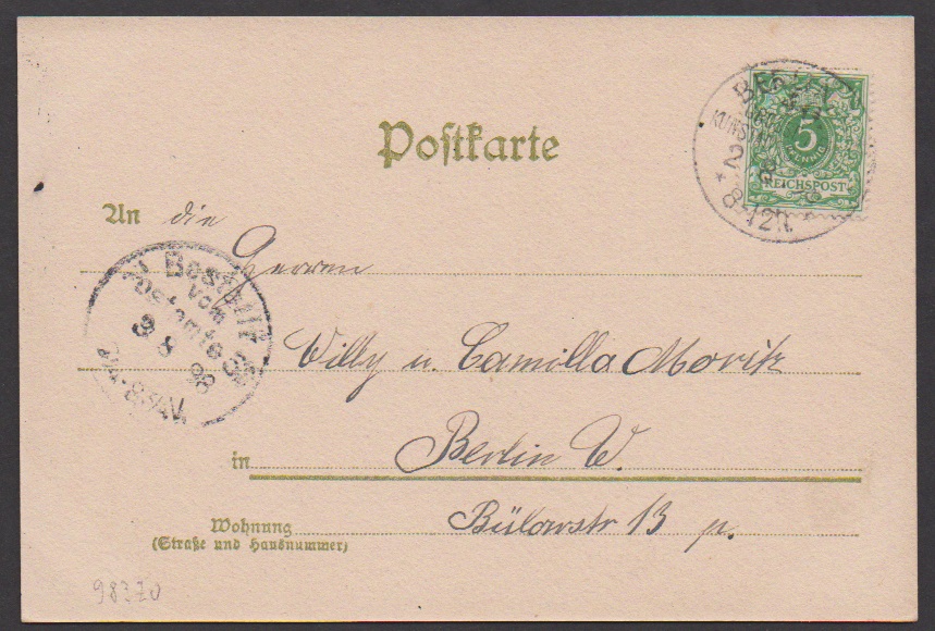 5 Pfg. auf Ansichtskarte 1898 mit frühem SST "Berlin 40. Grosse Berl. Kunstausstellung" (selten)