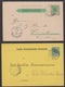 10 Pfg. per zwei auf Couvert von Berlin W64 1891 nach Smyrne/Türkei, ferner eine Germaniakarte nach Smyrne, sowie vier Ganzsachenkarten 10 Pfg. Krone-Adler je nach Beirut/Syrien