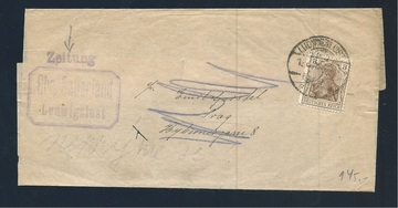 3 Pfg. Germania (kl. Eckfehler) als seltene Einzelfrankatur auf Zeitungsschleife aus Ludwigslust. Sondertarif für Zeitungen ab 1.10.1918, 3 statt 5 Pfg.