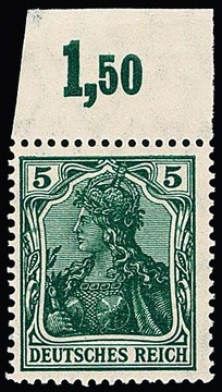 5 Pfg. schwarzopalgrün als postfrisches Plattendruck-Oberrandstück, sign. Zenker. Mi. 800,-