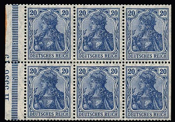 20 Pfg. Germania, Heftchenblatt mit durchgezähntem Rand links und HAN ungebraucht, sehr selten und im Michel nur mit "-.-" bewertet