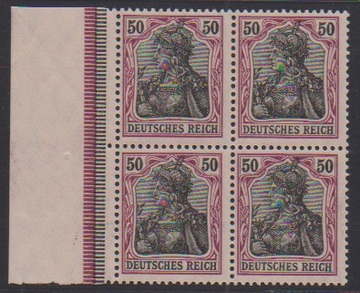 50 Pfg. auf orangeweiß im postfrischen Rand-Viererblock, sign. Jäschke. Mi. 260,- +