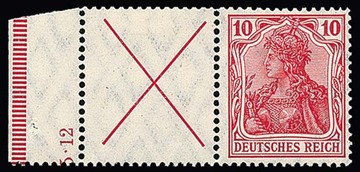 10 Pfg. Germania, Andreaskreuz-Zusammendruck mit Teil-HAN ungebraucht, Mi. 750,-