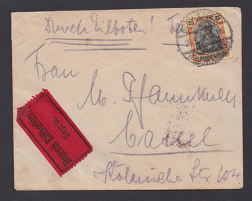 Germania, vier bessere Einzelfrankaturen: Nr. 88II auf Feldpost-Expreßbrief (nur Expreßgebühr frankiert), 89I auf Berliner Rohrpost-Ortsbrief, 91Ix auf Wertbrief nach Österreich, sowie Nr. 94AI auf Auslands-Wertpaketkarte