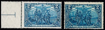 2 Mk. Querformat, Kriegsdruck, gute A-Zähnung tadellos postfrisch vom linken Bogenrand mit Passerkreuz, ferner B-Zähnung in guter Farbe postfrisch, je sign. Jäschke. Mi. 620,-