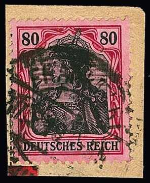 80 Pfg. Kriegsdruck, gute Variante "metallisch glänzend", auf tadellosem Briefstück, Attest Jäschke-L. Mi. 1300,-