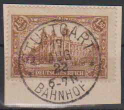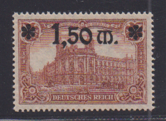 1,50 a. 1 Mk. Germania, Aufdruckfehler "1 mit breitem Kopf" sowohl postfrisch als auch gestempelt, sign. Infla, Bechtold. Mi. 600,-