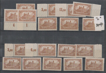 1,50 Mk. in den guten Farben rötlichbraun und braun je neunmal postfrisch, gepr. Mi. 1440,-