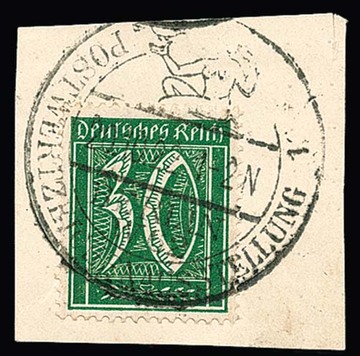 30 Pfg. Ziffern gest. mit Plattenfehler "Keil in der 0", sign. Tworek. Mi. 80,-