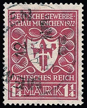 75 Pfg. Germania, sowie 1 1/4 und 10 Mk. Gewerbeschau je in besserer "b"-Farbe gestempelt, sign. Infla. Mi. 720,-