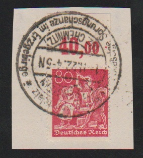 80 Pfg. Arbeiter, Plattendruck-Oberrandstück auf klar gestempeltem Briefstück, sign. Infla. Mi. 250,-