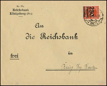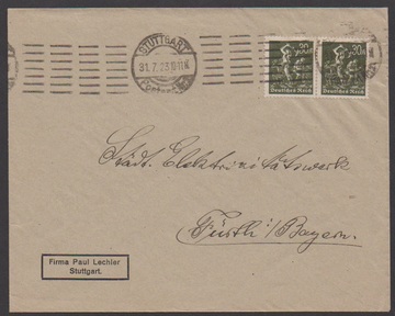 30 Mk. Arbeiter in guter Farbe als MeF auf Drucksache (sign. Infla), sowie 100 Mk. Flugpost als EF auf Brief, Mi. 255,-