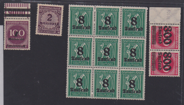 Drei bessere postfrische, gepr. Werte: Nr. 257I/III (beide PF auf einer Marke, Mi. ohne Bewertung), 275aI (Mi. 150,-), sowie ungewöhnliche Kombination Nr. 337AFIV mit PE1 (Befund)
