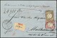 2 Gr. blau im Paar auf Faltbrief von Uelzen 1872 via Triest nach Ost-Indien. Trotz Fehlern (u.a. rechts oben eine Marke ausgeschnitten) ein seltener Brief