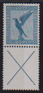 20 Pfg. Flugpost, ungebrauchter senkrechter Andreaskreuz-Zusammendruck, Mi. 350,-