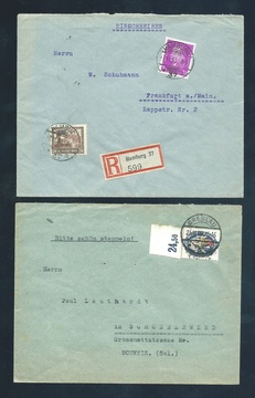 50 Pfg. Nothilfe je mit ZuF 5 Pfg. auf zwei portoger. R-Briefen, Mi. 310,-