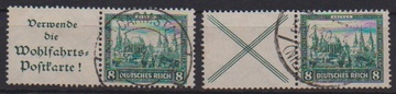 8 Pfg. Nothilfe, zwei verschiedene gestempelte Zusammendrucke, sign. Schlegel. Mi. 300,-