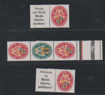 15 Pfg. Nothilfe, zwei Reklame-Zusammendrucke, sowie Leerfeld-Zusammendruck 15/8/15 Pfg. (S53L) je ungebraucht, Mi. 300,-