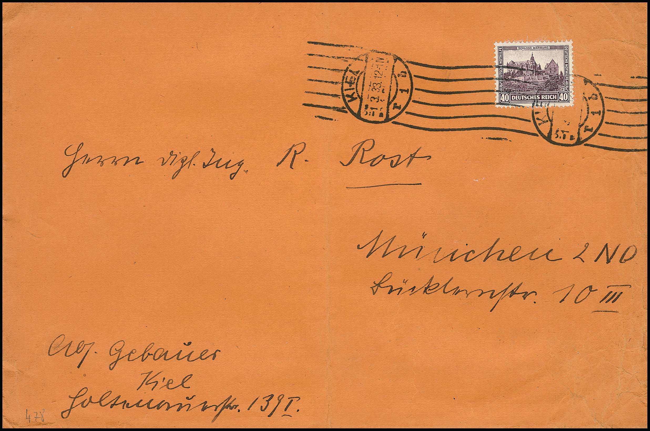 40 Pfg. Nothilfe als gute Einzelfrankatur auf Inlandsbrief der 4. Gewichtsstufe (typische Mittelfalte ausserhalb), sowie nebst Nr. A379, 467(2), 476 und 536 auf Lupo-Auslands-R-Brief