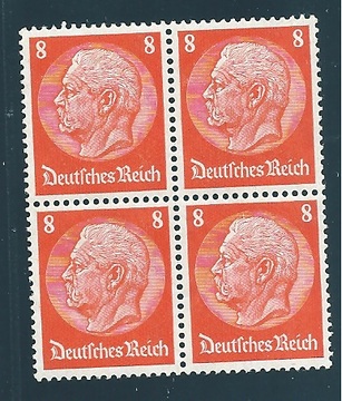 8 Pfg. Hindenburg, "offenes D", im Viererblock, drei Werte postfrisch, einer winzige Haftstelle, Mi. 205,-