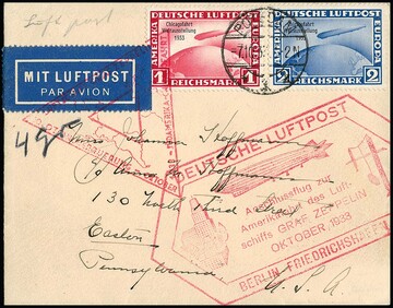 1 und 2 RM Chicagofahrt auf Zeppelinbrief zur Weltausstellung mit Anschlußflug ab Berlin, Mi. 800,- + Sieger 435,- (Nr. 238E)