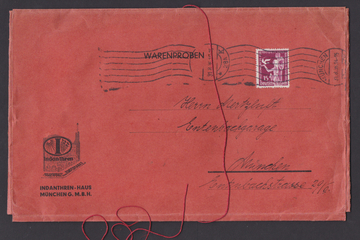 15 Pfg. Weltkongreß als Einzelfrankatur auf Warenproben-Ortsbrief von München 1936, seltene Variante!