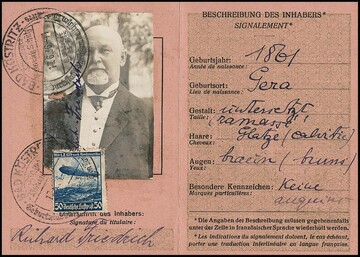 50 Pfg. Zeppelin, sehr seltene Verwendung dieser Marke auf Postausweis aus Bad Köstritz 1936