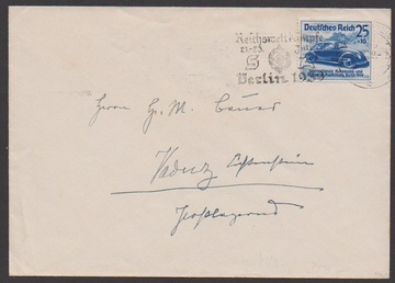 25 Pfg. IAA als portoger. EF auf Bedarfs-Auslandsbrief (!) von Freiburg 1939 nach Vaduz/Liechtenstein