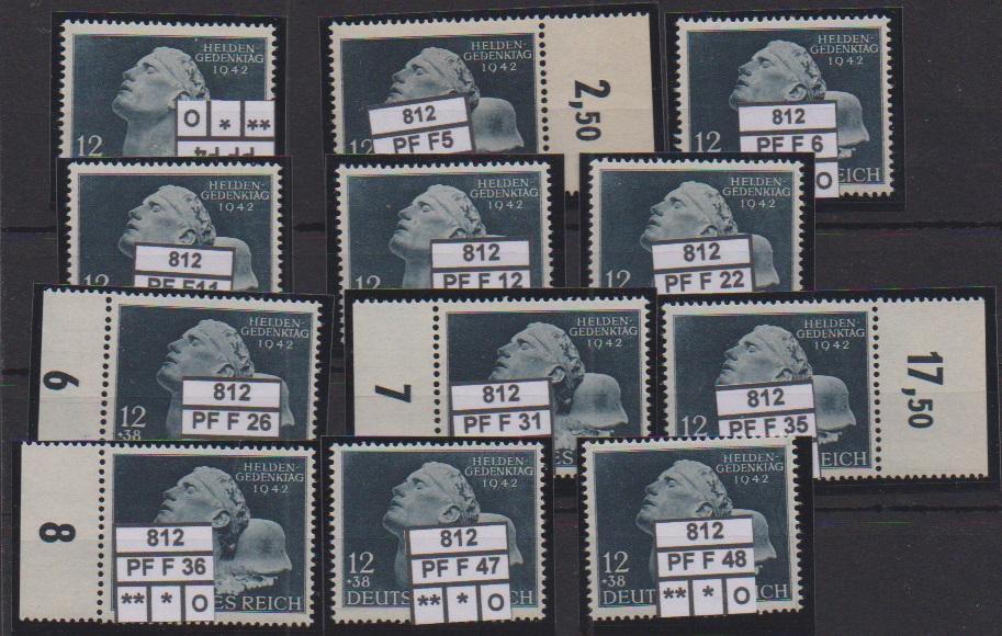 Heldengedenktag, alle sechs Plattenfehler nach Michel (Mi. 390,-), sowie 12 weitere Plattenfehler (je mit Feld-Zuordnung) nach Schantl (hoher KW!), postfrisch