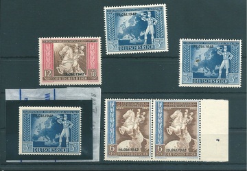 Postkongreß, fünf versch. Plattenfehler (also ohne Nr. 823III) kpl. postfrisch, teils sign. Schlegel. Mi. 400,-