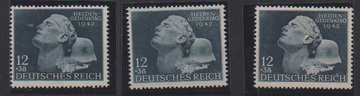 Führer-Geburtstag, Plattenfehler Nr. 845 bis 847 je I und 846 II postfrisch, Mi. 630,-