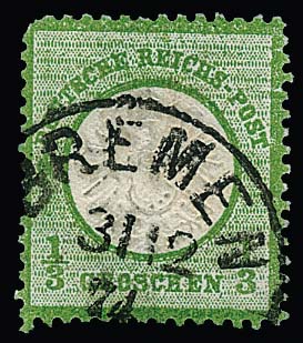 1/3 Gr. grün (zwei kurze Zähne) mit klarem Letzttags-K1 "Bremen 31.12.74", Fotoexp. Krug