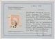 1/2 Gr. orange, kl. Schild, zweimal auf rosa Correspondenz-Doppelkarte, Frageteil aus Hirschberg/Schlesien (Ra3) gelaufen, Antwortteil mit ungestempelter Marke, die auch ohne Gummi selten ist!