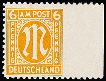 6 Pfg., Abart "rechts ungezähnt" als postfrisches rechtes Randstück (Gummi leichte Altersspuren), Fotoexp. Hettler. Mi. 350,-