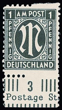 1 Pfg., postfrisches Unterrandstück, oben und unten zu je 2/3 ungezähnt