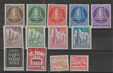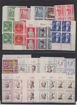 Beethoven bis Gedächtniskirche, sowie Nr. 115-120, 124-125 und 163-172, je in postfrischen Rand-Viererblöcken, oft Bogenecken, Mi. lose 1622,- +