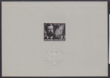 10 Pfg. Mergenthaler, schwarz, seltener Ankündigungskarton, Mi. 380,-