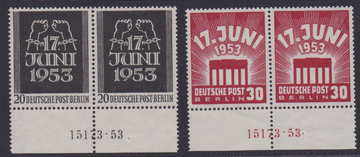 17. Juni, postfrische waagerechte HAN-Unterrandpaare, Mi. 230,-